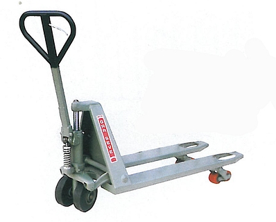 Carrello transpallet Tipo TH 77 con sistema di abbassamento mediante leva sul timone. A richiesta si fornisce con freno. Portata 2000 Kg. |